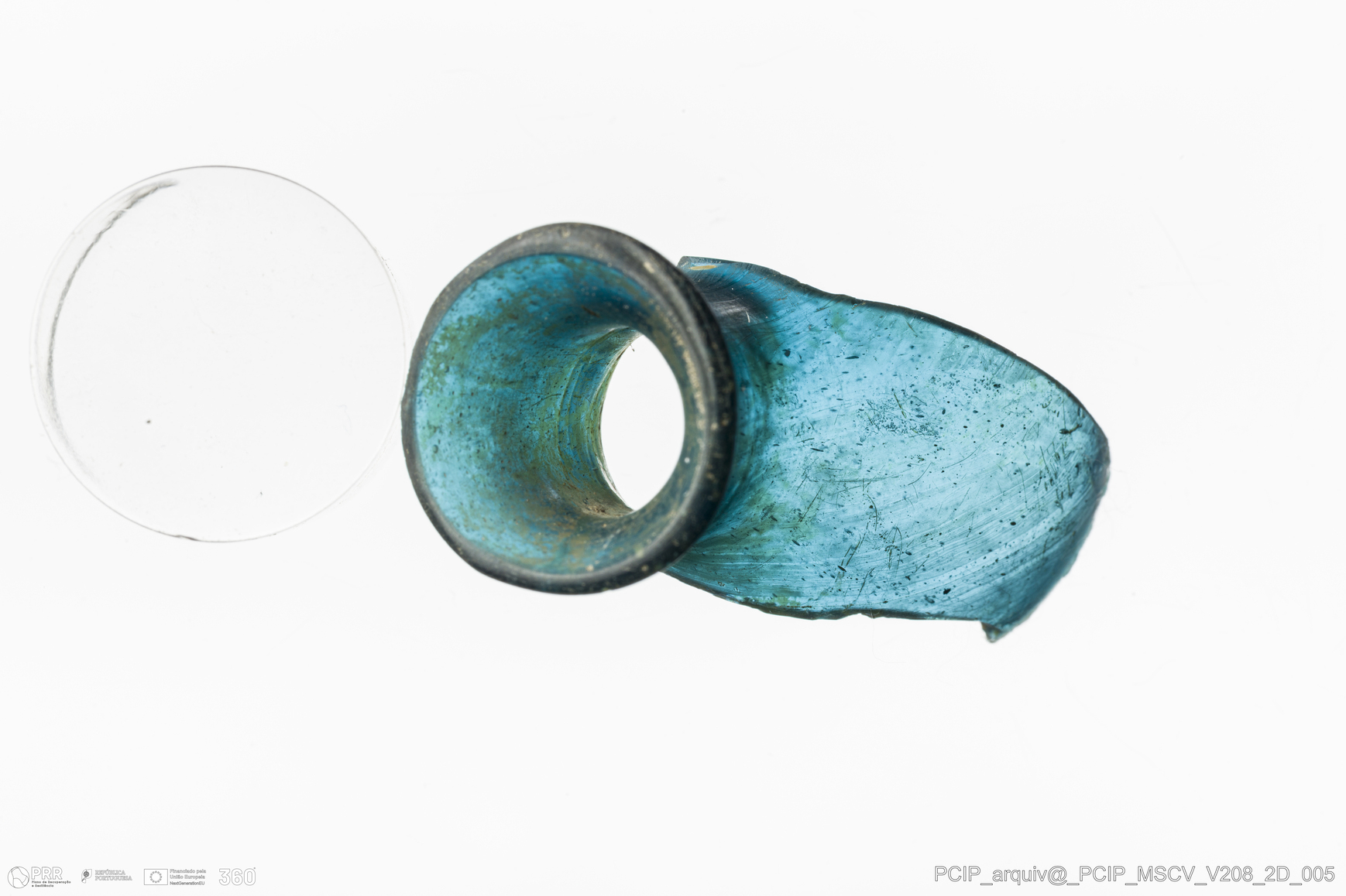 Matéria/Técnica: Vidro; Cronologia: Século XVII; Autoria: Desconhecida; Dimensões: Diâmetro bordo: 20mm.