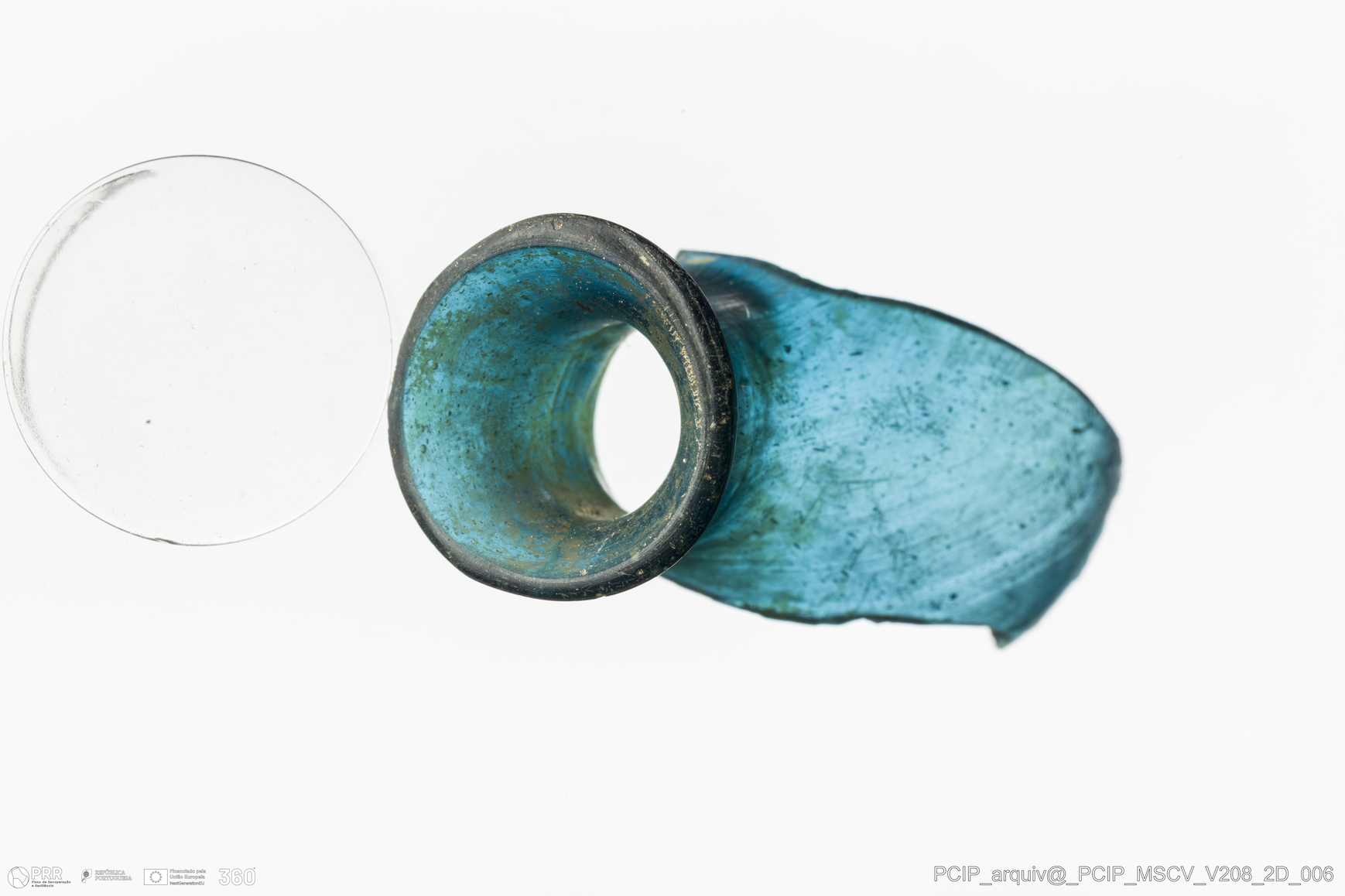 Matéria/Técnica: Vidro; Cronologia: Século XVII; Autoria: Desconhecida; Dimensões: Diâmetro bordo: 20mm.