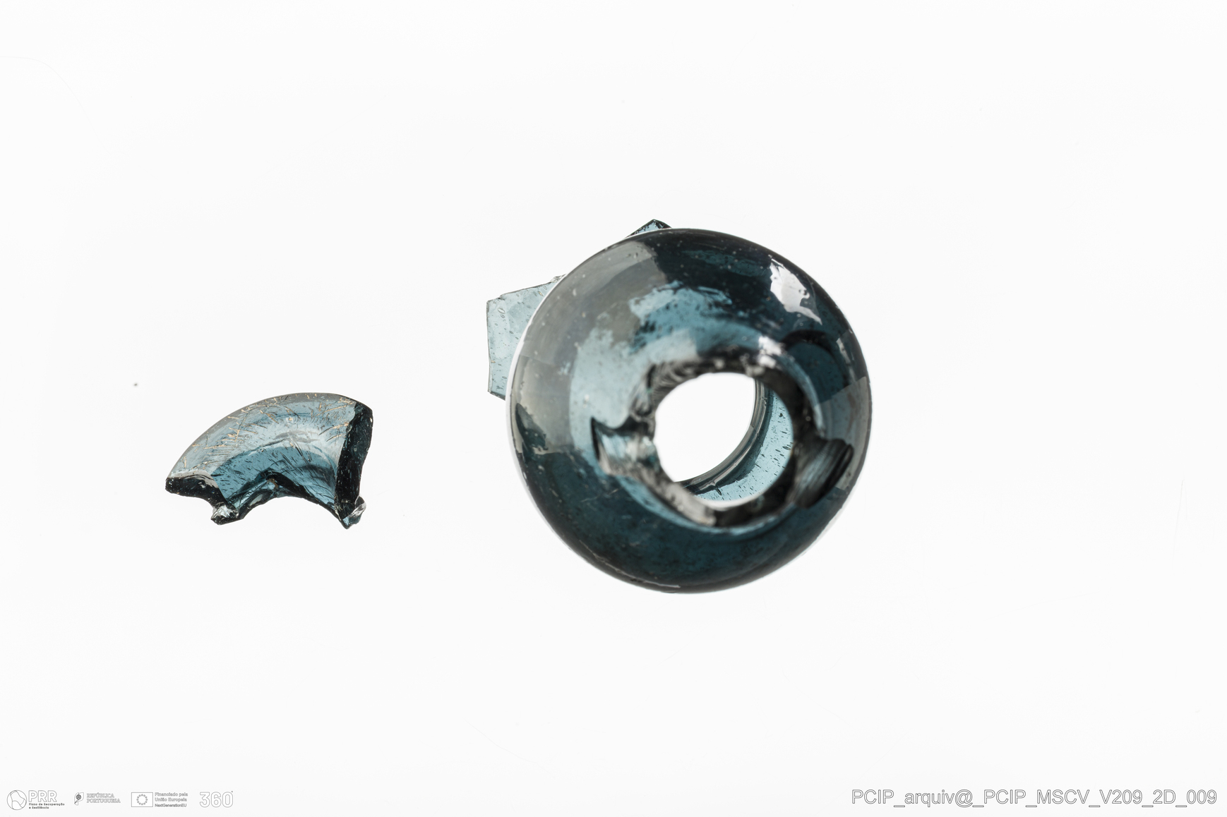 Matéria/Técnica: Vidro; Cronologia: Século XVII; Autoria: Desconhecida; Dimensões: Diâmetro bordo: 26mm.