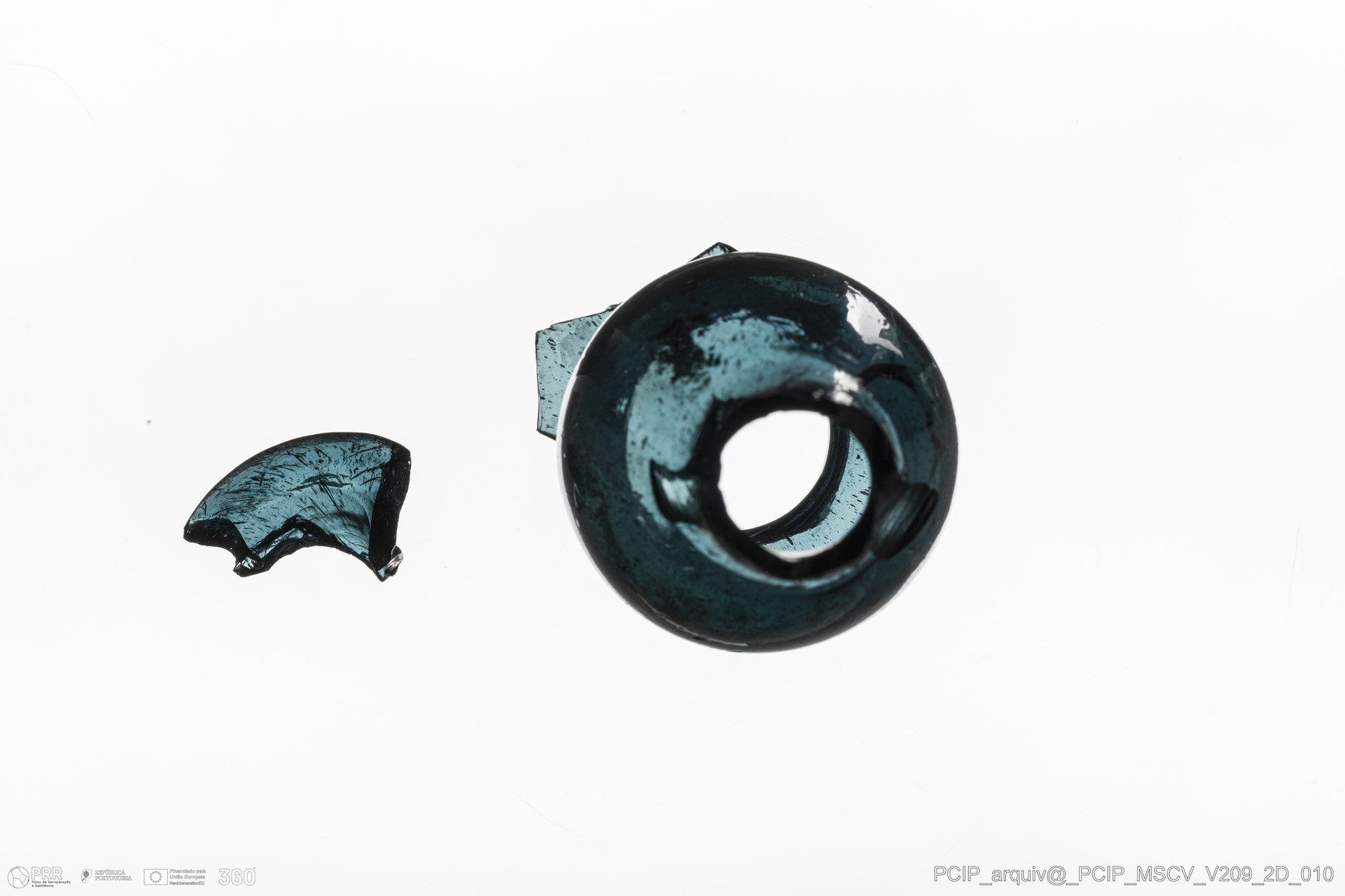 Matéria/Técnica: Vidro; Cronologia: Século XVII; Autoria: Desconhecida; Dimensões: Diâmetro bordo: 26mm.