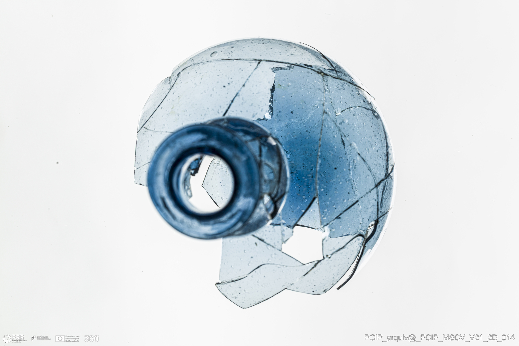Matéria/Técnica: Vidro; Cronologia: Século XVII; Autoria: Desconhecida; Dimensões: Diâmetro bordo: 27mm; Diâmetro base: 64mm; Altura: 106mm.