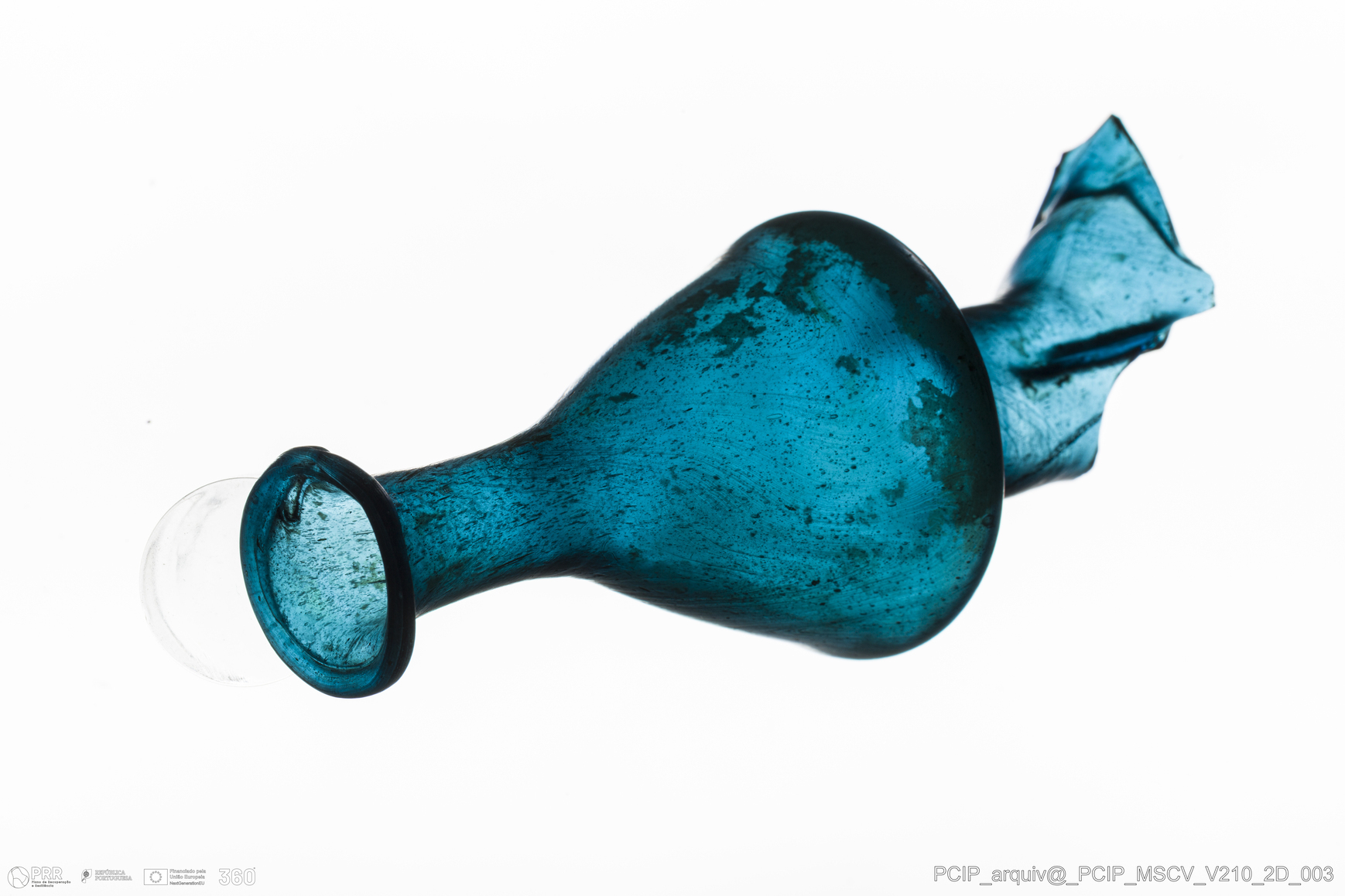 Matéria/Técnica: Vidro; Cronologia: Século XVII; Autoria: Desconhecida; Dimensões: Diâmetro bordo: 26mm.