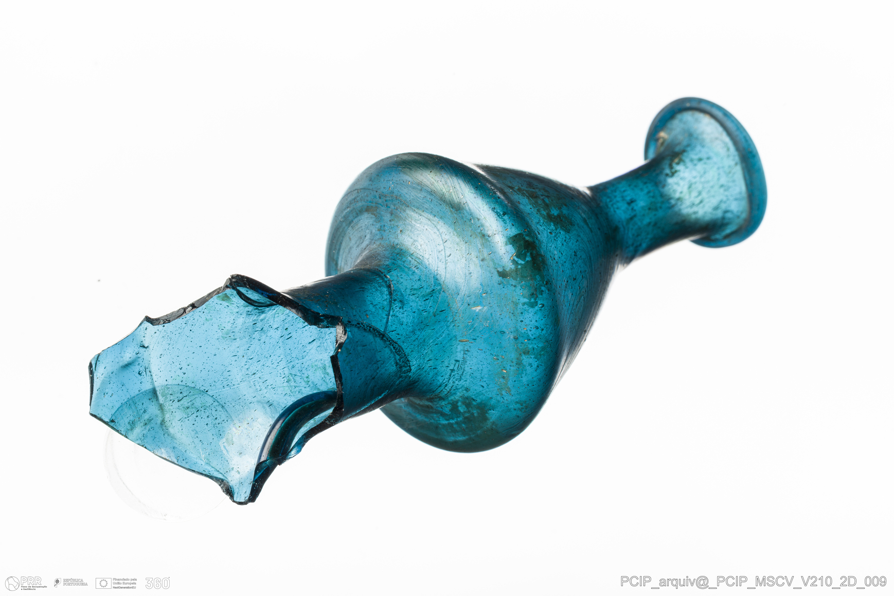Matéria/Técnica: Vidro; Cronologia: Século XVII; Autoria: Desconhecida; Dimensões: Diâmetro bordo: 26mm.