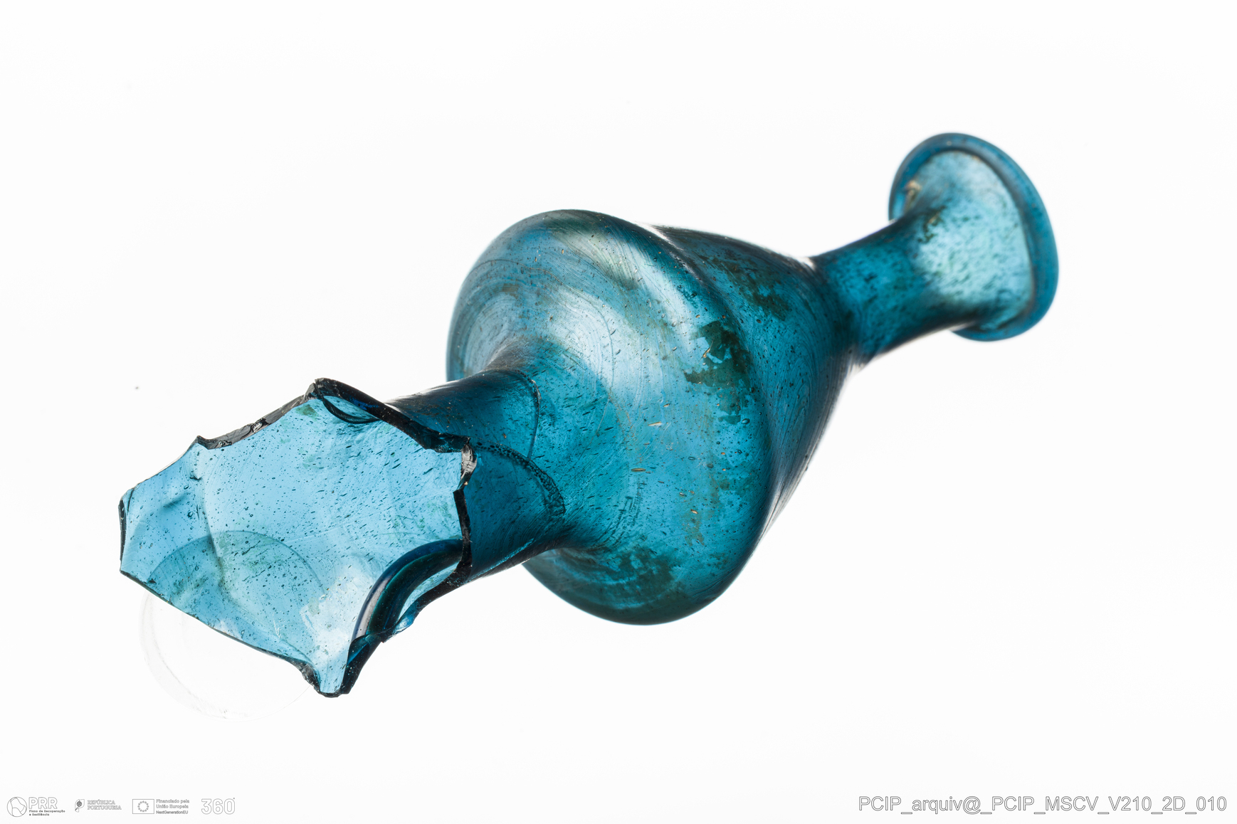 Matéria/Técnica: Vidro; Cronologia: Século XVII; Autoria: Desconhecida; Dimensões: Diâmetro bordo: 26mm.