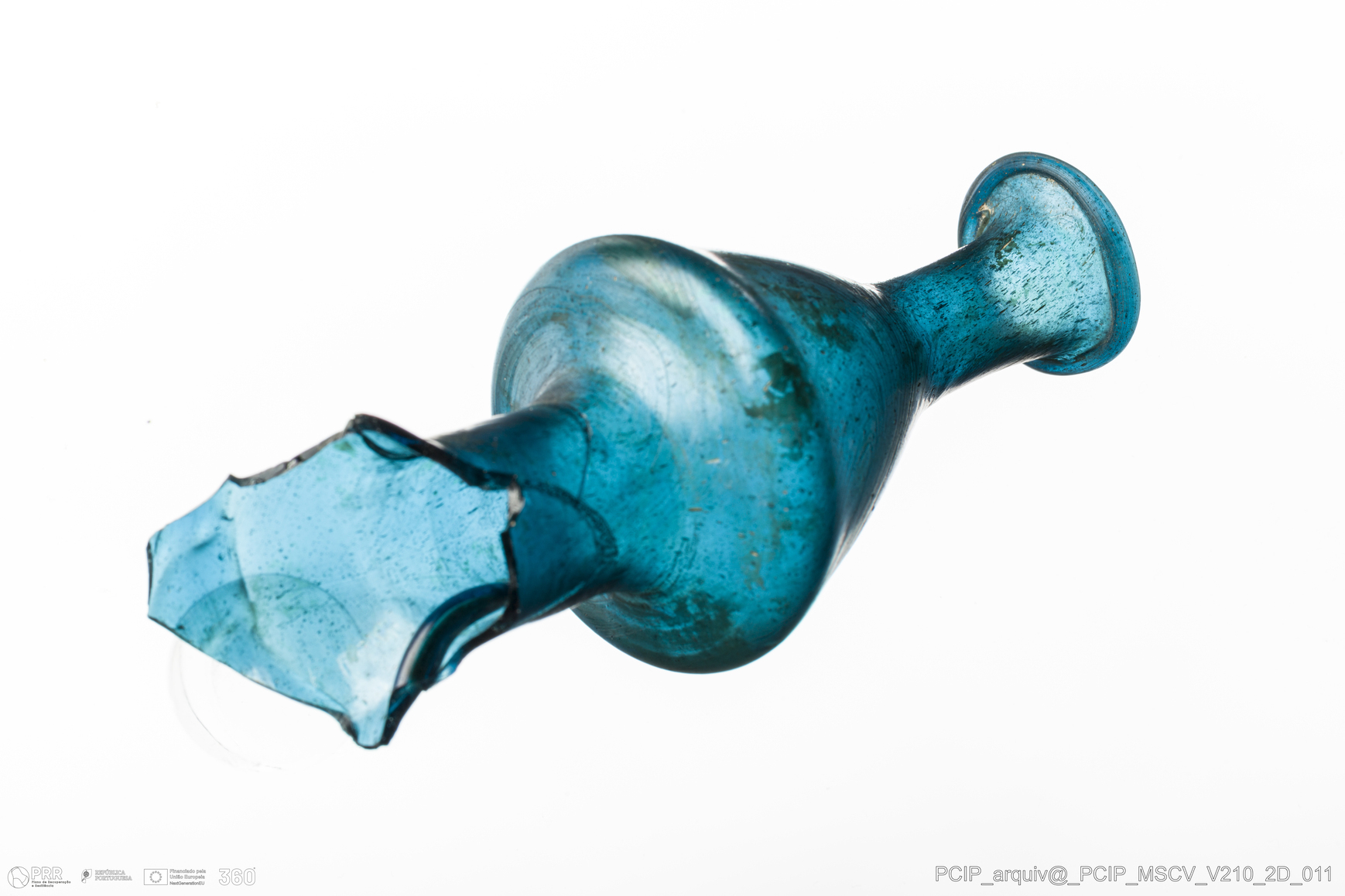 Matéria/Técnica: Vidro; Cronologia: Século XVII; Autoria: Desconhecida; Dimensões: Diâmetro bordo: 26mm.