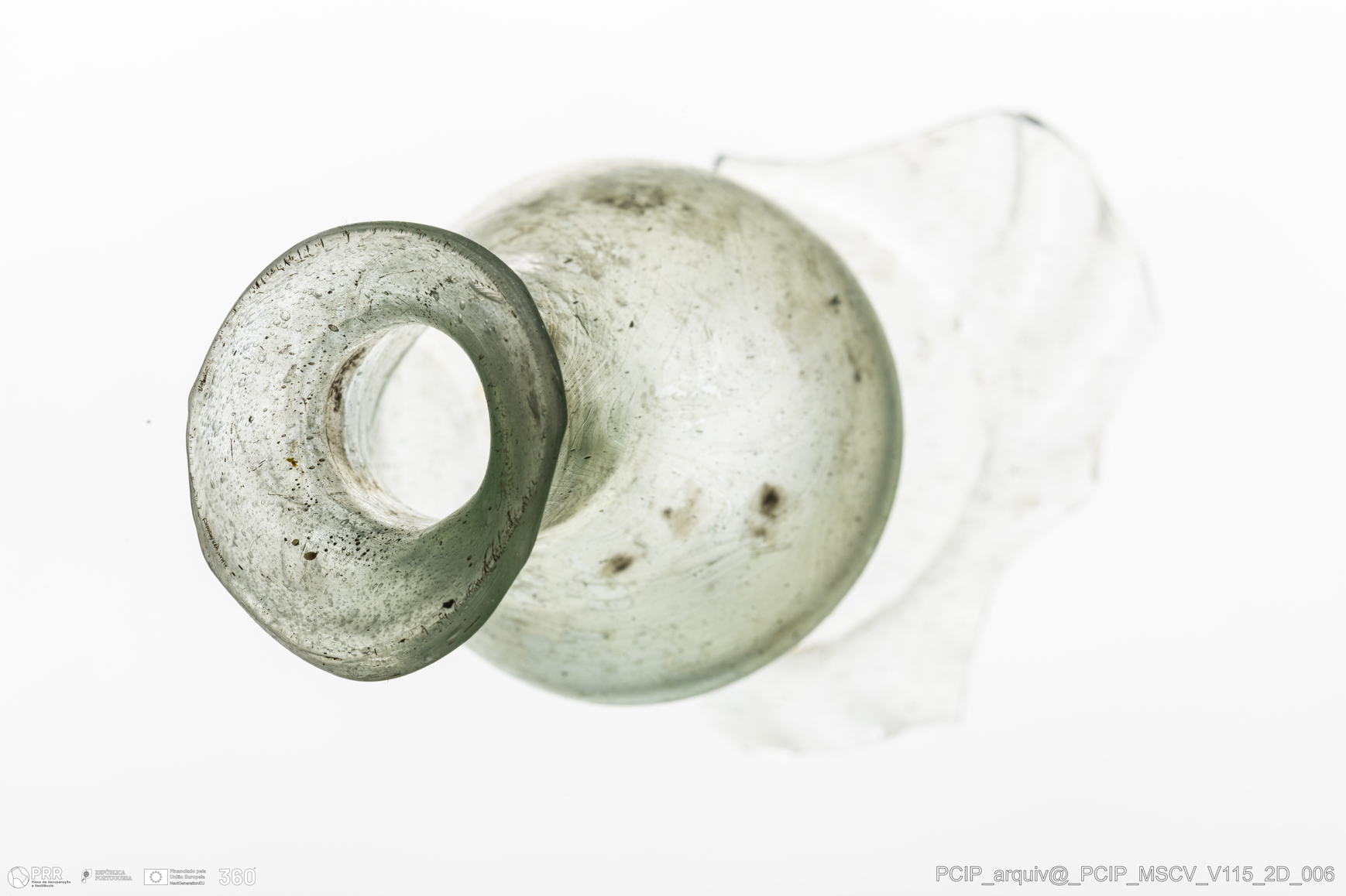 Matéria/Técnica: Vidro; Cronologia: Século XVII; Autoria: Desconhecida; Dimensões: Diâmetro bordo: 32mm.