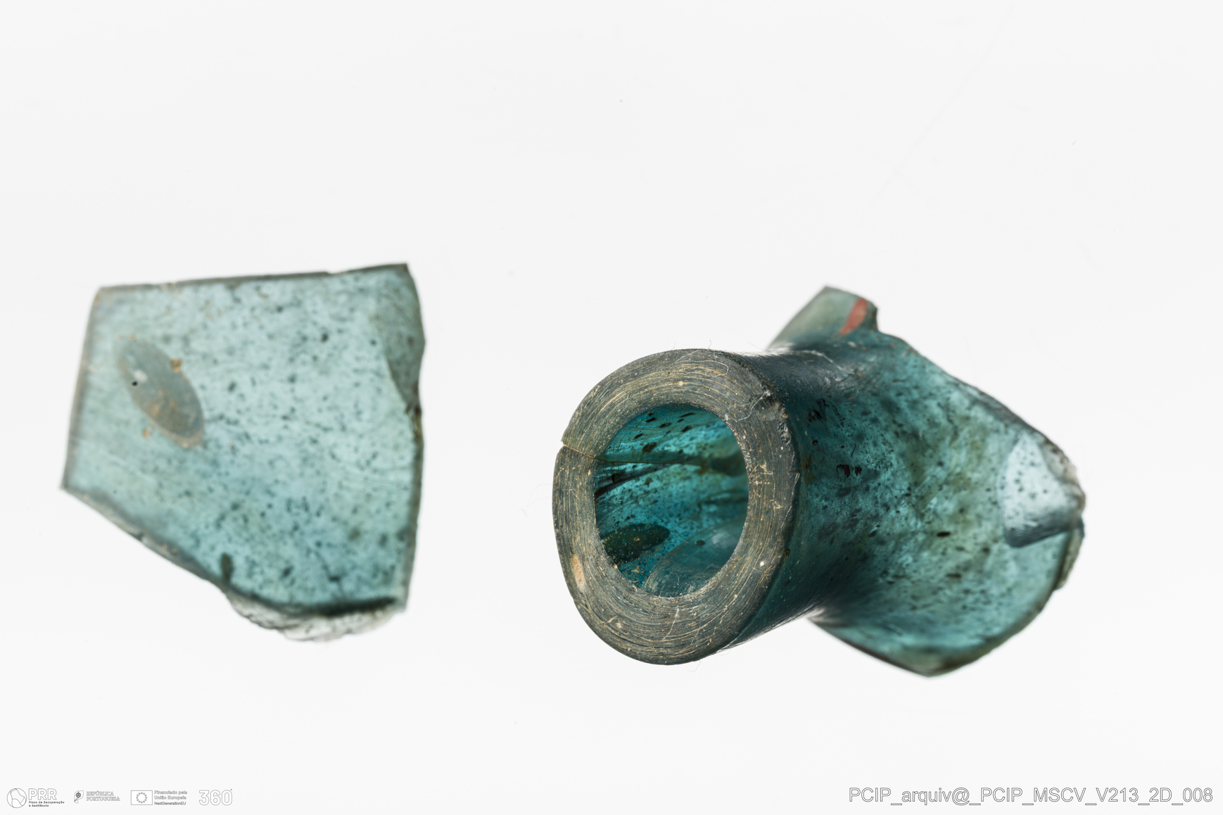 Matéria/Técnica: Vidro; Cronologia: Século XVII; Autoria: Desconhecida; Dimensões: Diâmetro bordo: 14mm.
