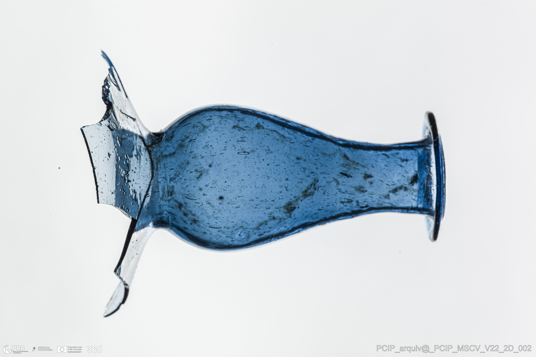 Matéria/Técnica: Vidro; Cronologia: Século XVII; Autoria: Desconhecida; Dimensões: Altura: 74mm; Diâmetro bordo: 27mm.