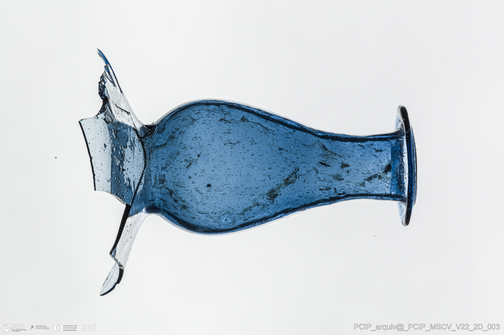 Matéria/Técnica: Vidro; Cronologia: Século XVII; Autoria: Desconhecida; Dimensões: Altura: 74mm; Diâmetro bordo: 27mm.