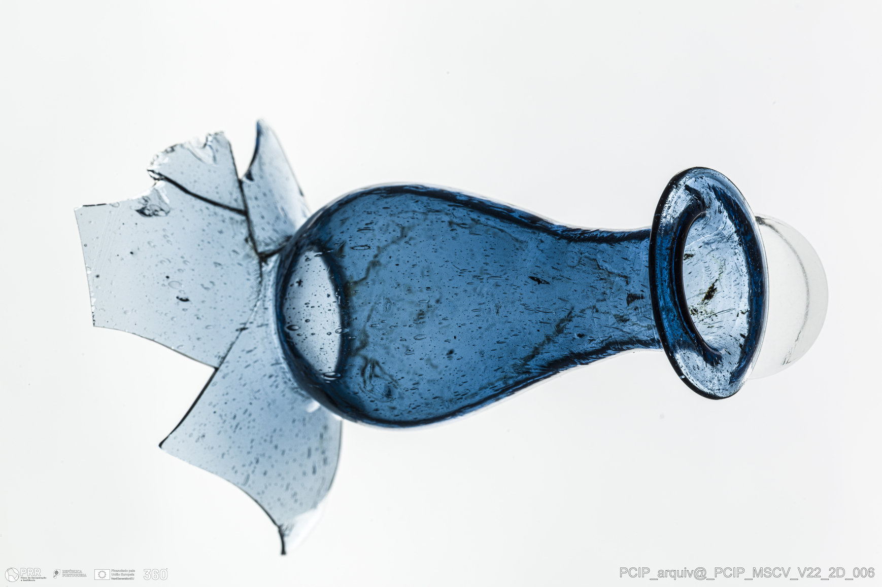 Matéria/Técnica: Vidro; Cronologia: Século XVII; Autoria: Desconhecida; Dimensões: Altura: 74mm; Diâmetro bordo: 27mm.