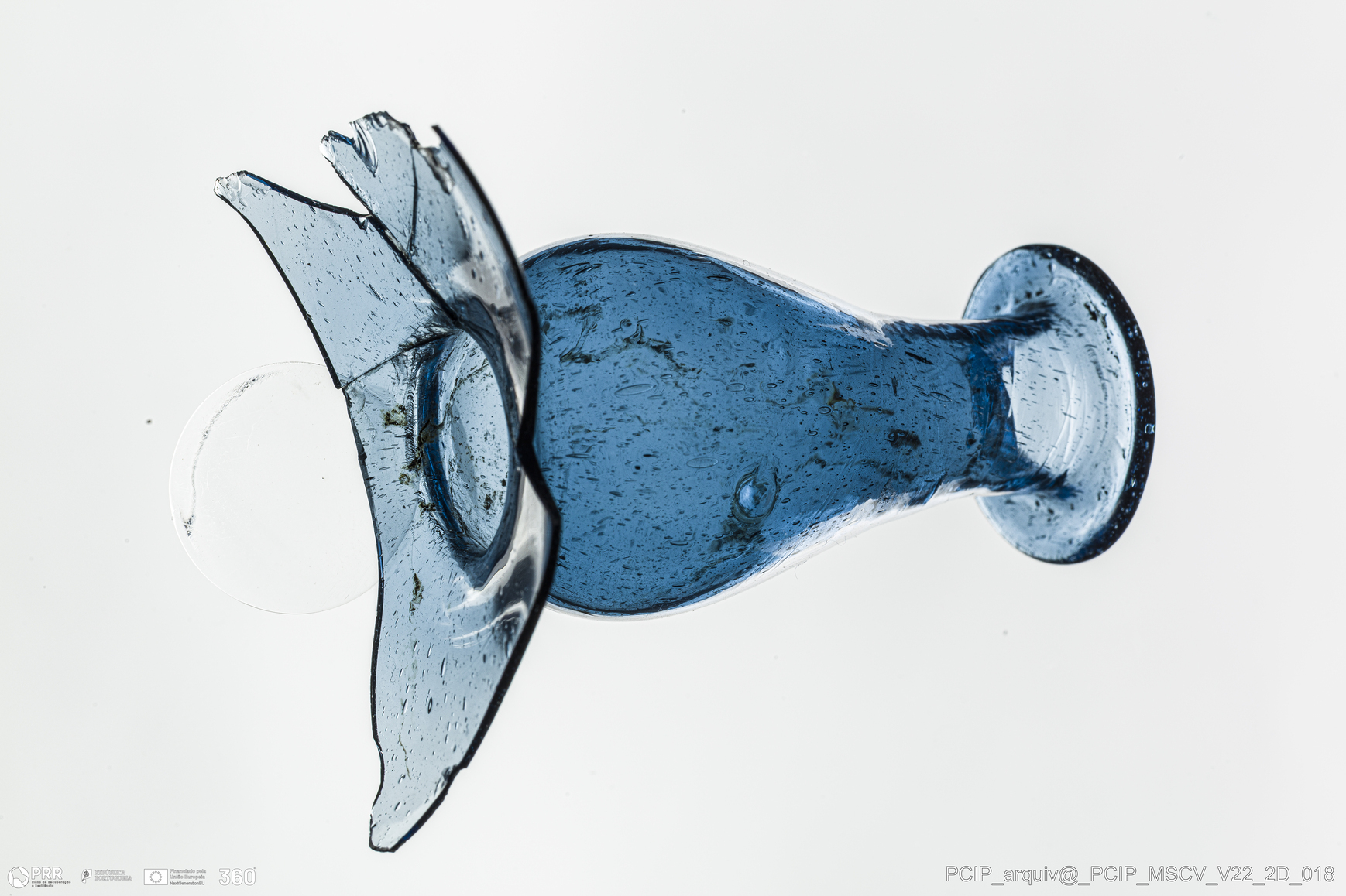 Matéria/Técnica: Vidro; Cronologia: Século XVII; Autoria: Desconhecida; Dimensões: Altura: 74mm; Diâmetro bordo: 27mm.