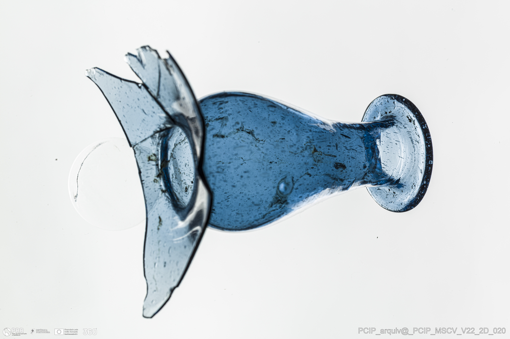 Matéria/Técnica: Vidro; Cronologia: Século XVII; Autoria: Desconhecida; Dimensões: Altura: 74mm; Diâmetro bordo: 27mm.