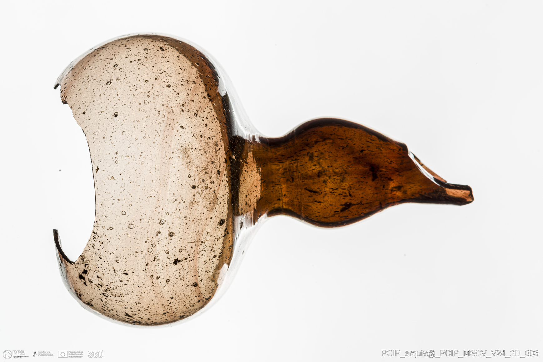 Matéria/Técnica: Vidro; Cronologia: Século XVII; Autoria: Desconhecida; Dimensões: Altura: 87mm; Diâmetro: 61,5mm.