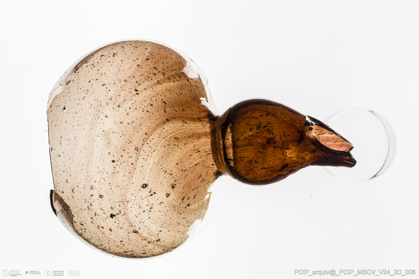 Matéria/Técnica: Vidro; Cronologia: Século XVII; Autoria: Desconhecida; Dimensões: Altura: 87mm; Diâmetro: 61,5mm.