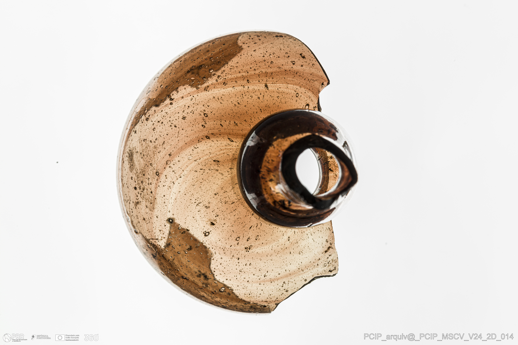 Matéria/Técnica: Vidro; Cronologia: Século XVII; Autoria: Desconhecida; Dimensões: Altura: 87mm; Diâmetro: 61,5mm.