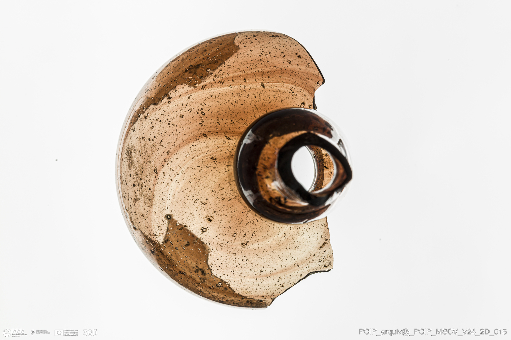 Matéria/Técnica: Vidro; Cronologia: Século XVII; Autoria: Desconhecida; Dimensões: Altura: 87mm; Diâmetro: 61,5mm.