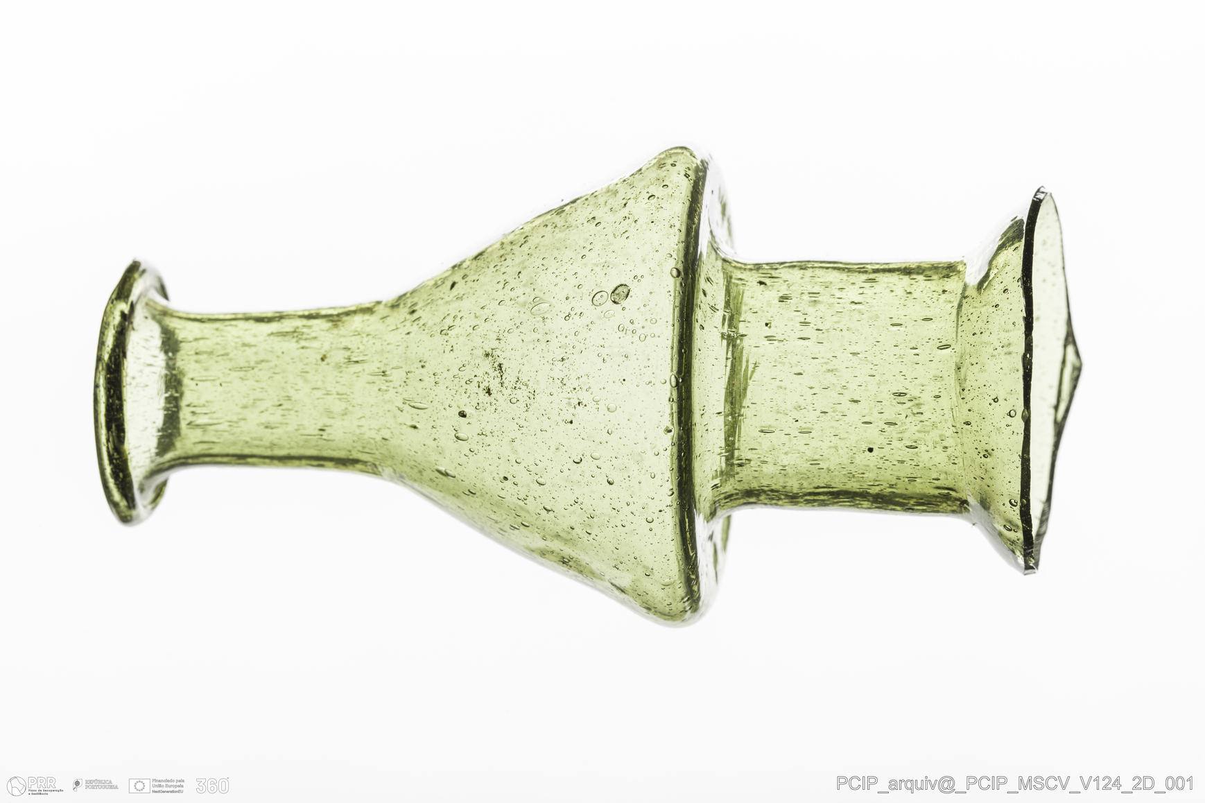 Matéria/Técnica: Vidro; Cronologia: Século XVII; Autoria: Desconhecida; Dimensões: Diâmetro bordo: 29mm.