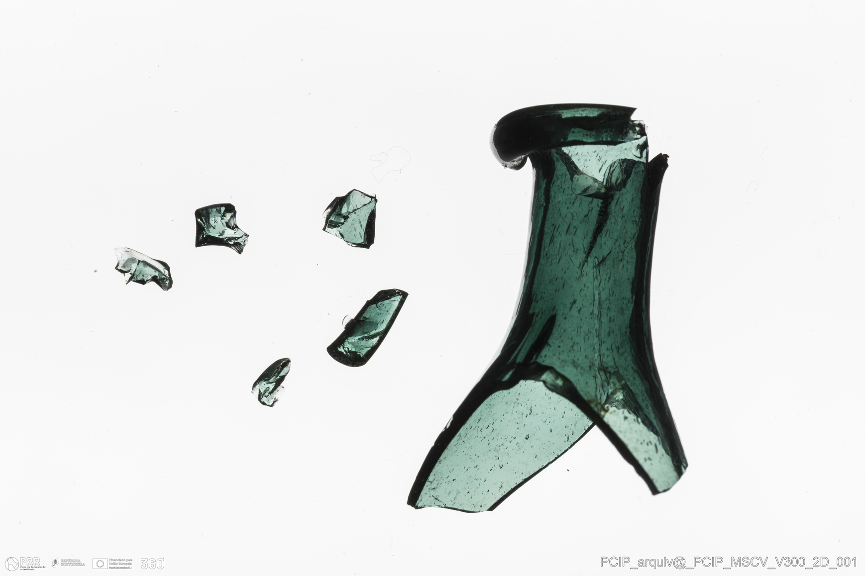 Matéria/Técnica: Vidro; Cronologia: Século XVII; Autoria: Desconhecida; Dimensões: Diâmetro bordo: 21mm.