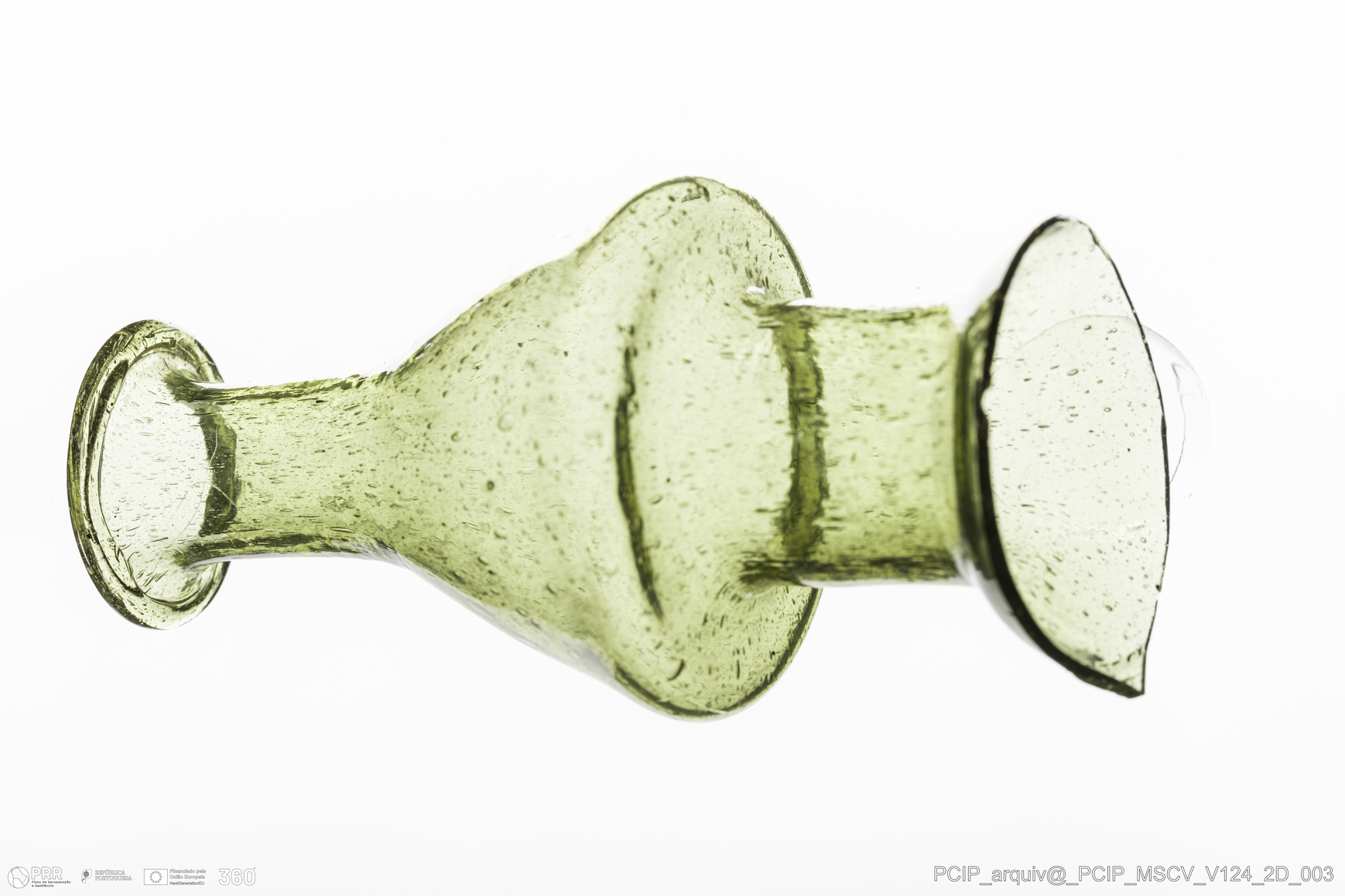 Matéria/Técnica: Vidro; Cronologia: Século XVII; Autoria: Desconhecida; Dimensões: Diâmetro bordo: 29mm.