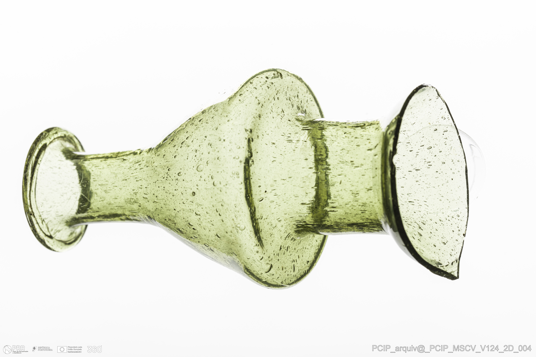 Matéria/Técnica: Vidro; Cronologia: Século XVII; Autoria: Desconhecida; Dimensões: Diâmetro bordo: 29mm.