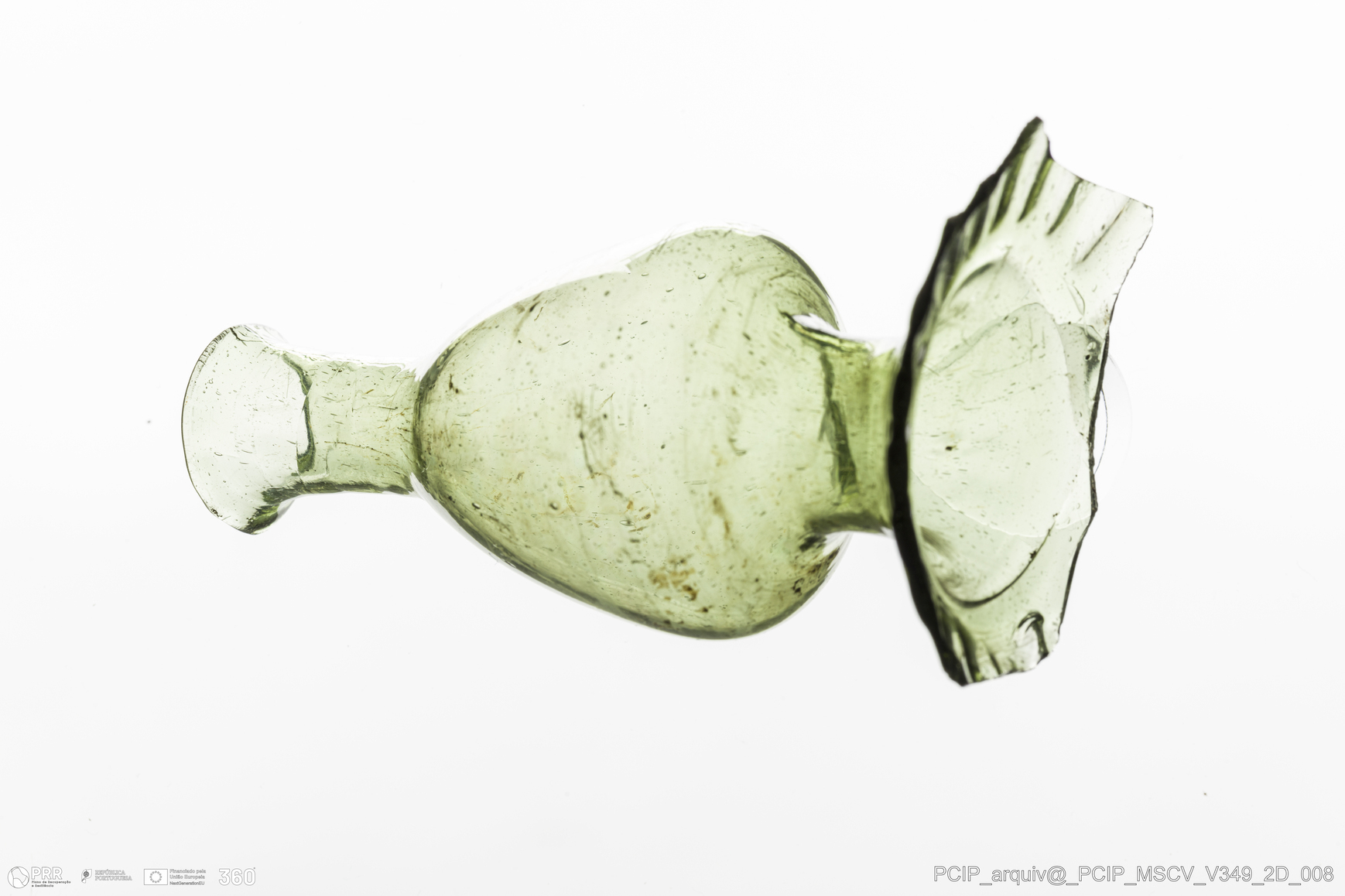 Matéria/Técnica: Vidro; Cronologia: Século XVII; Autoria: Desconhecida; Dimensões: Diâmetro bordo: 20mm.