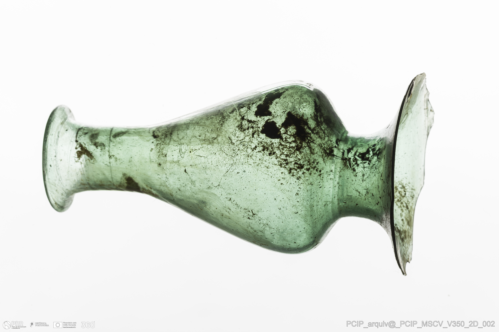 Matéria/Técnica: Vidro; Cronologia: Século XVII; Autoria: Desconhecida; Dimensões: Diâmetro bordo: 27mm.