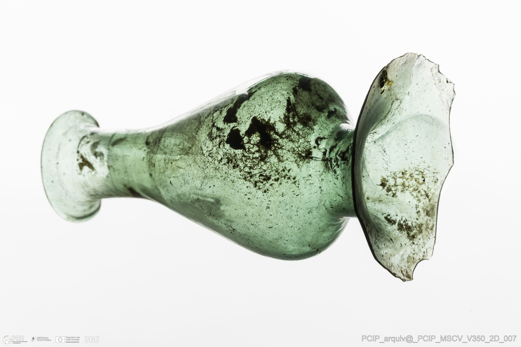 Matéria/Técnica: Vidro; Cronologia: Século XVII; Autoria: Desconhecida; Dimensões: Diâmetro bordo: 27mm.