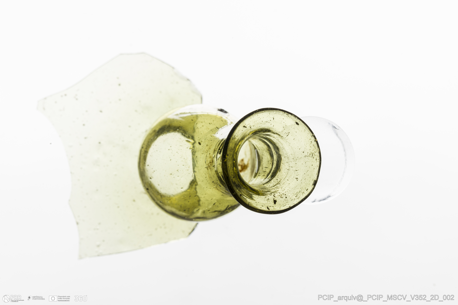 Matéria/Técnica: Vidro; Cronologia: Século XVII; Autoria: Desconhecida; Dimensões: Diâmetro bordo: 24mm.