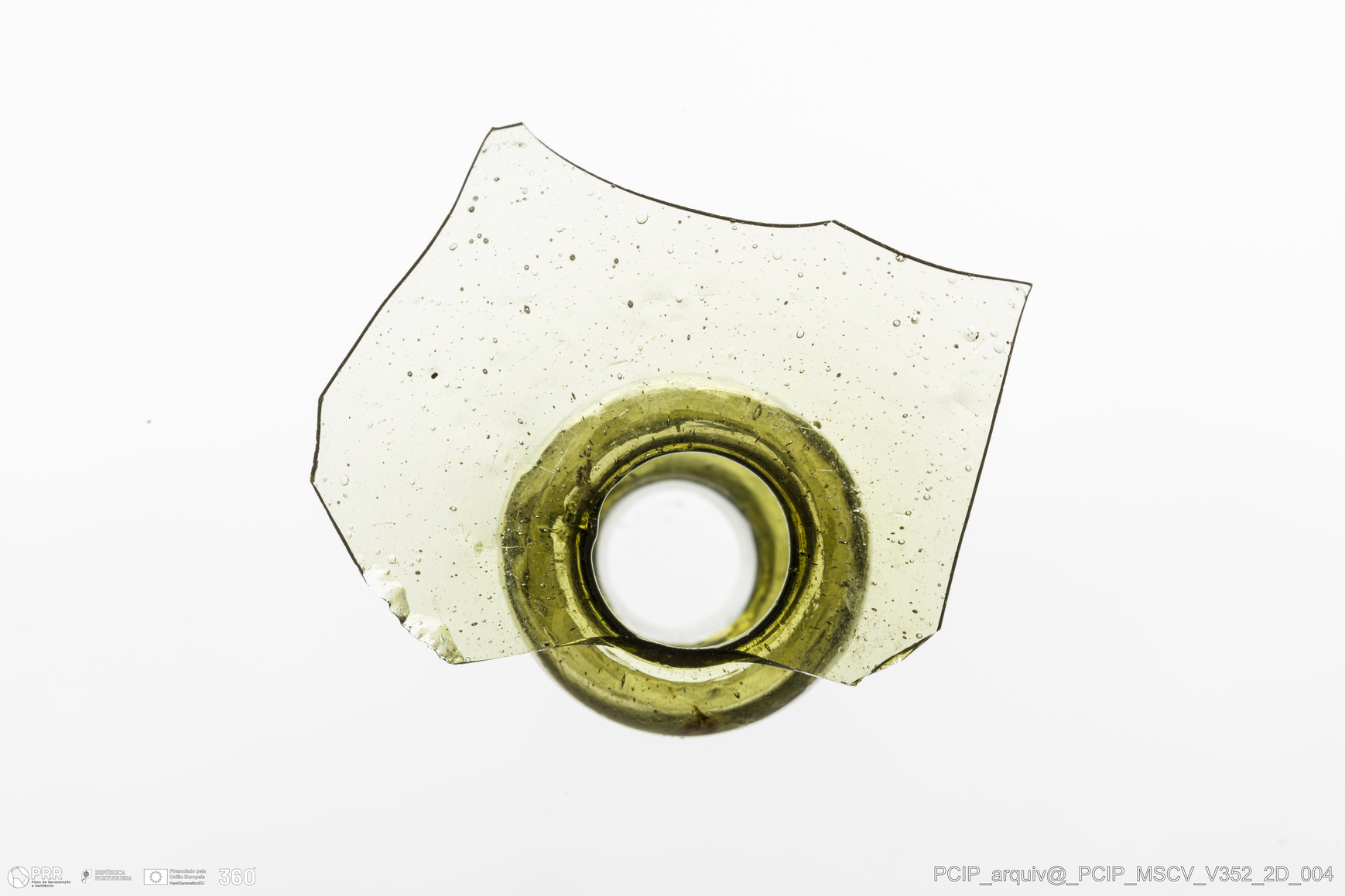 Matéria/Técnica: Vidro; Cronologia: Século XVII; Autoria: Desconhecida; Dimensões: Diâmetro bordo: 24mm.