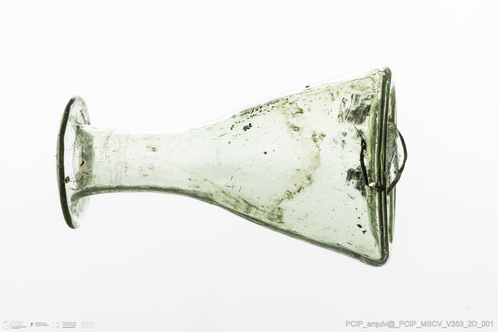 Matéria/Técnica: Vidro; Cronologia: Século XVII; Autoria: Desconhecida; Dimensões: Diâmetro bordo: 30mm.