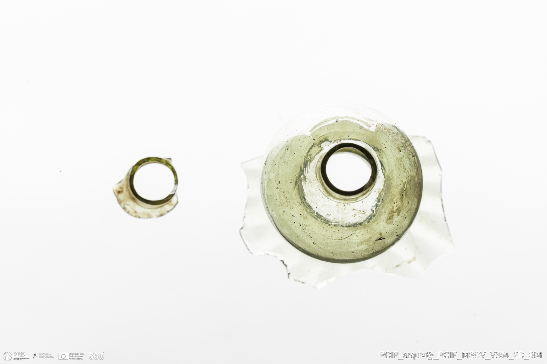 Matéria/Técnica: Vidro; Cronologia: Século XVII; Autoria: Desconhecida; Dimensões: Diâmetro bordo: 20mm.
