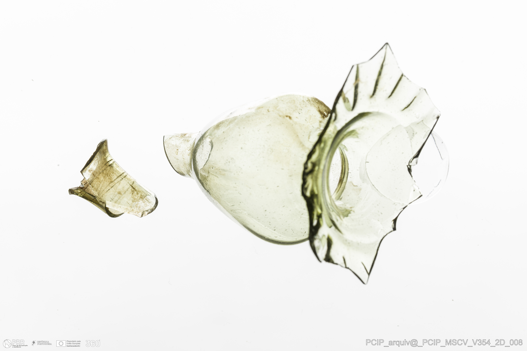 Matéria/Técnica: Vidro; Cronologia: Século XVII; Autoria: Desconhecida; Dimensões: Diâmetro bordo: 20mm.