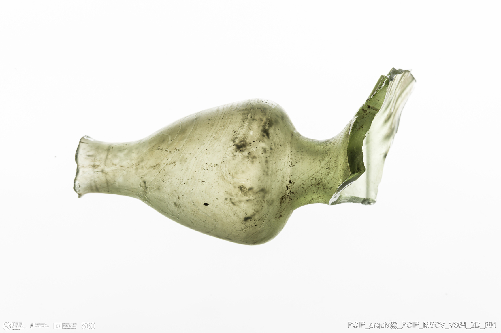 Matéria/Técnica: Vidro; Cronologia: Século XVII; Autoria: Desconhecida; Dimensões: Diâmetro bordo: 16mm.