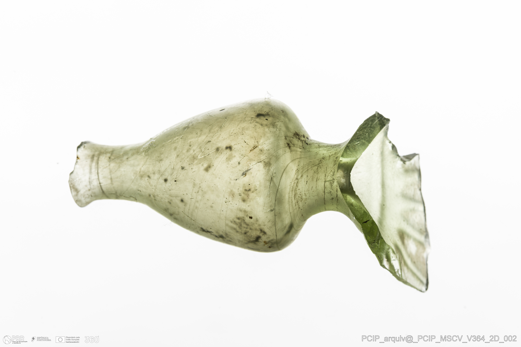 Matéria/Técnica: Vidro; Cronologia: Século XVII; Autoria: Desconhecida; Dimensões: Diâmetro bordo: 16mm.