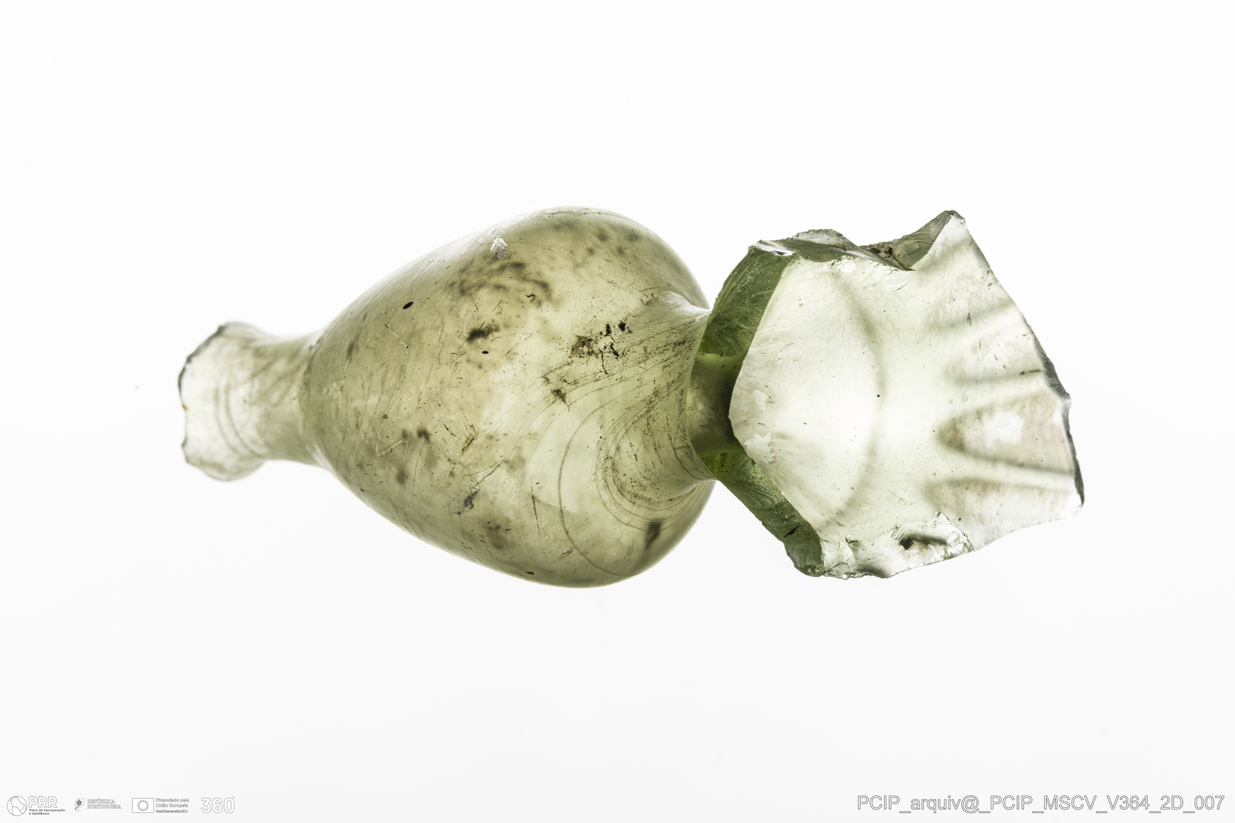 Matéria/Técnica: Vidro; Cronologia: Século XVII; Autoria: Desconhecida; Dimensões: Diâmetro bordo: 16mm.