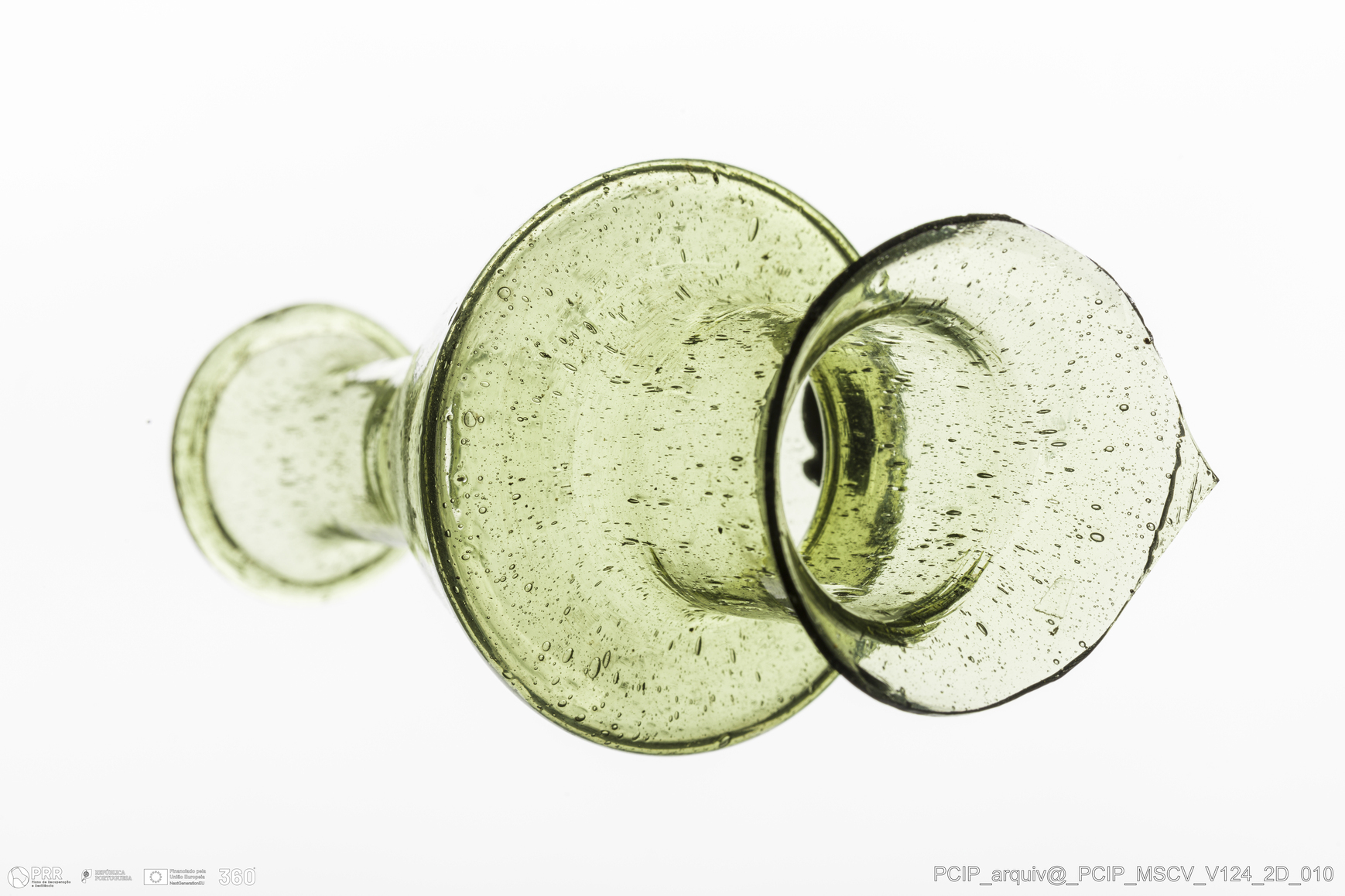 Matéria/Técnica: Vidro; Cronologia: Século XVII; Autoria: Desconhecida; Dimensões: Diâmetro bordo: 29mm.