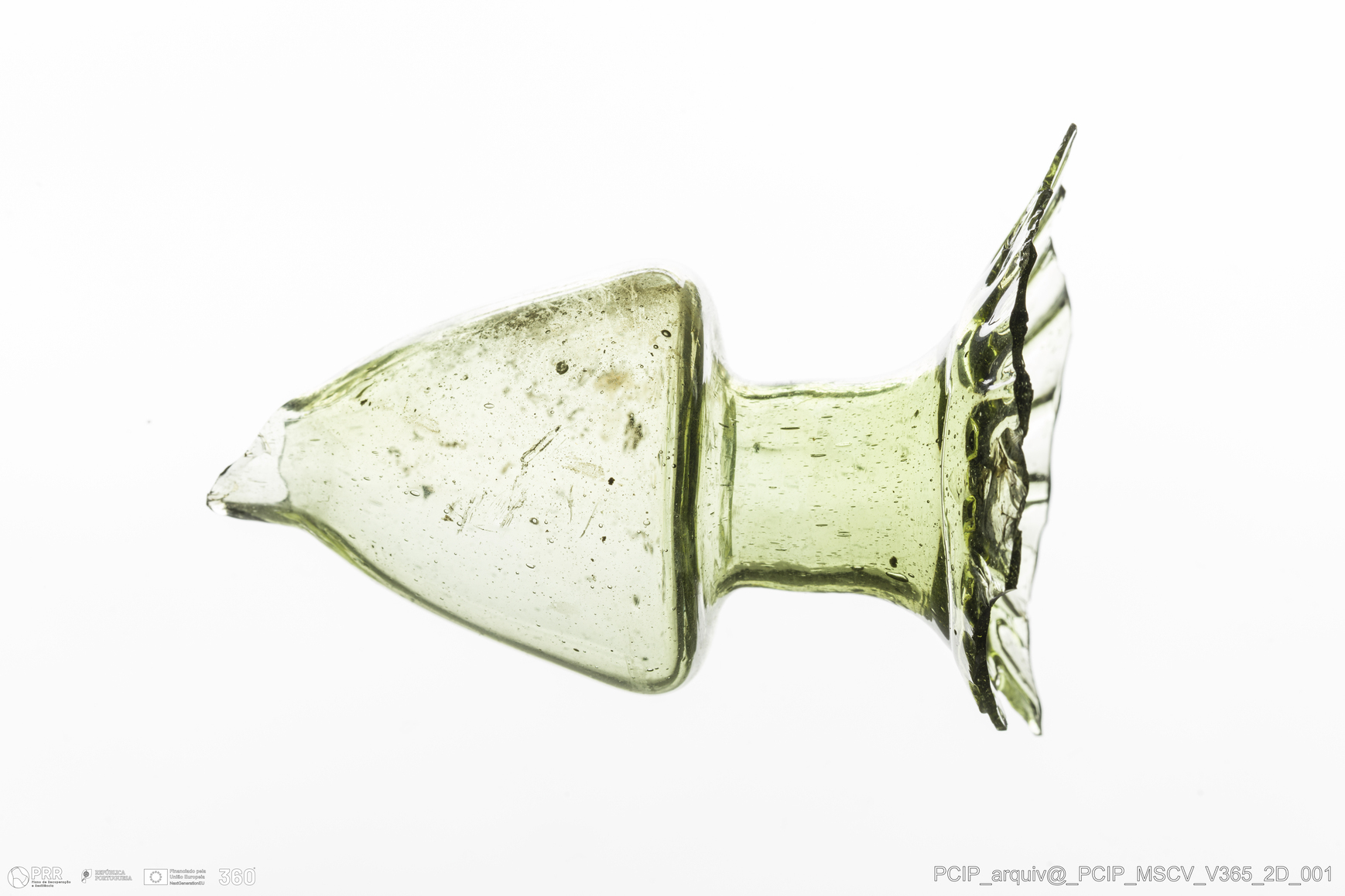 Matéria/Técnica: Vidro; Cronologia: Século XVII; Autoria: Desconhecida; Dimensões: Largura: 60mm; Altura: 84mm.