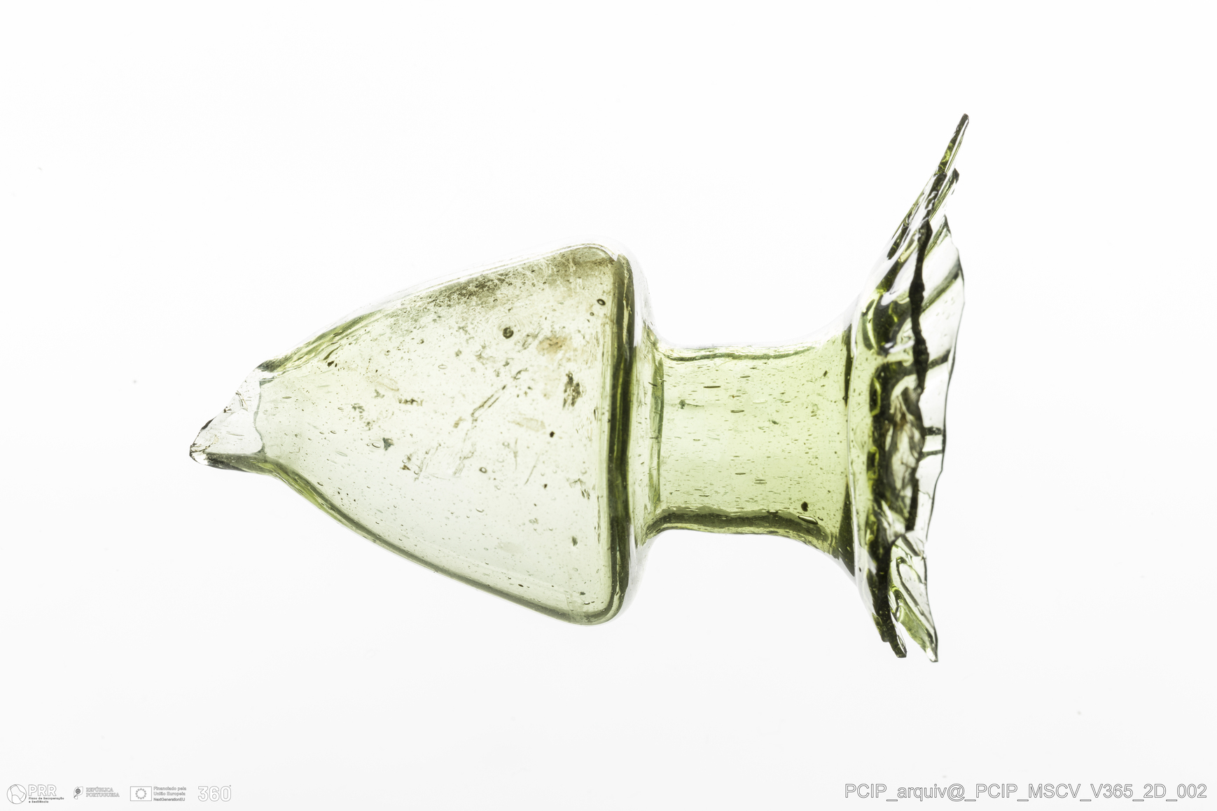 Matéria/Técnica: Vidro; Cronologia: Século XVII; Autoria: Desconhecida; Dimensões: Largura: 60mm; Altura: 84mm.
