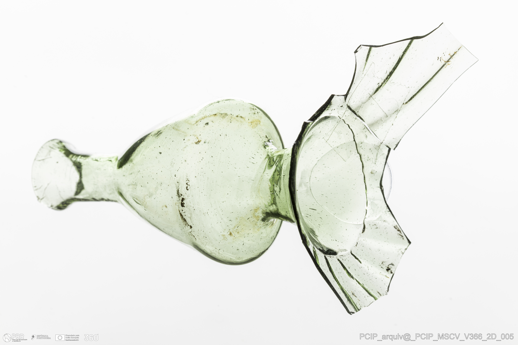 Matéria/Técnica: Vidro; Cronologia: Século XVII; Autoria: Desconhecida; Dimensões: Diâmetro bordo: 18mm.