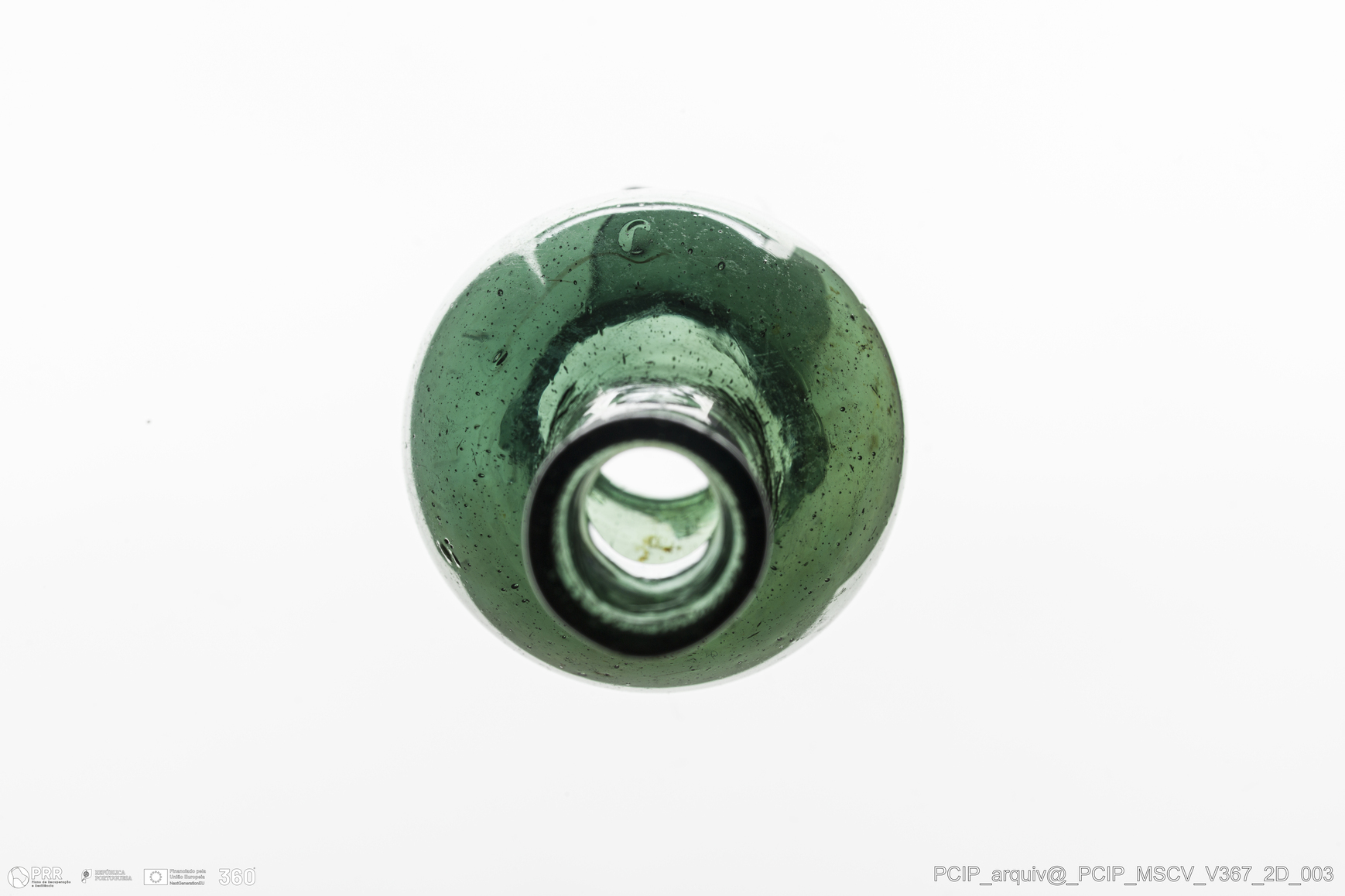 Matéria/Técnica: Vidro; Cronologia: Século XVII; Autoria: Desconhecida; Dimensões: Diâmetro bordo: 15mm.