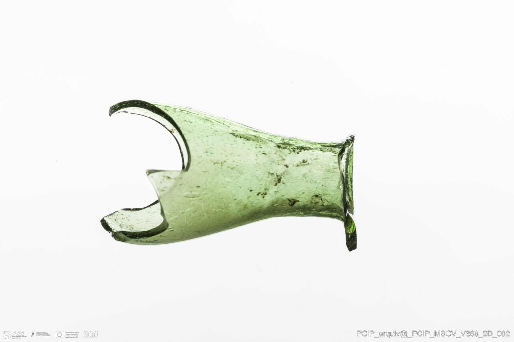 Matéria/Técnica: Vidro; Cronologia: Século XVII; Autoria: Desconhecida; Dimensões: Diâmetro bordo: 30mm.