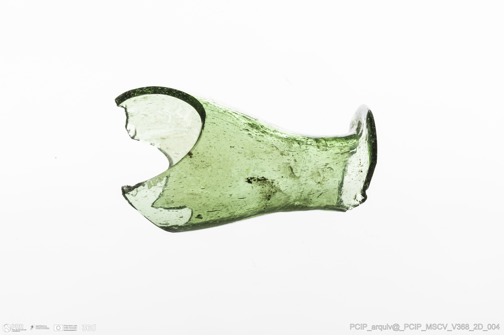 Matéria/Técnica: Vidro; Cronologia: Século XVII; Autoria: Desconhecida; Dimensões: Diâmetro bordo: 30mm.