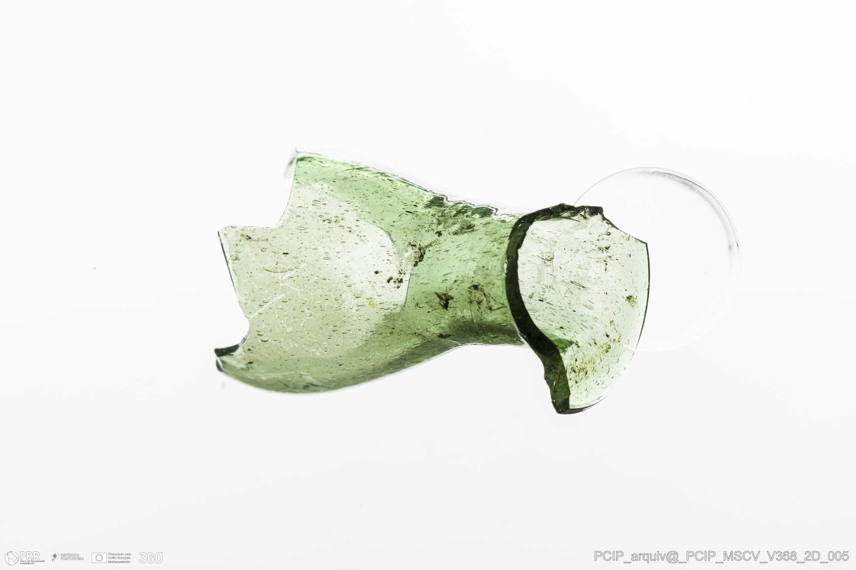 Matéria/Técnica: Vidro; Cronologia: Século XVII; Autoria: Desconhecida; Dimensões: Diâmetro bordo: 30mm.