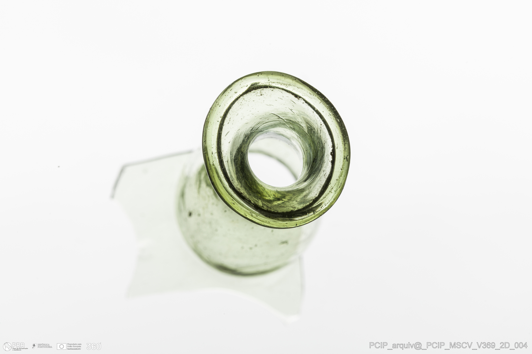 Matéria/Técnica: Vidro; Cronologia: Século XVII; Autoria: Desconhecida; Dimensões: Diâmetro bordo: 24mm.