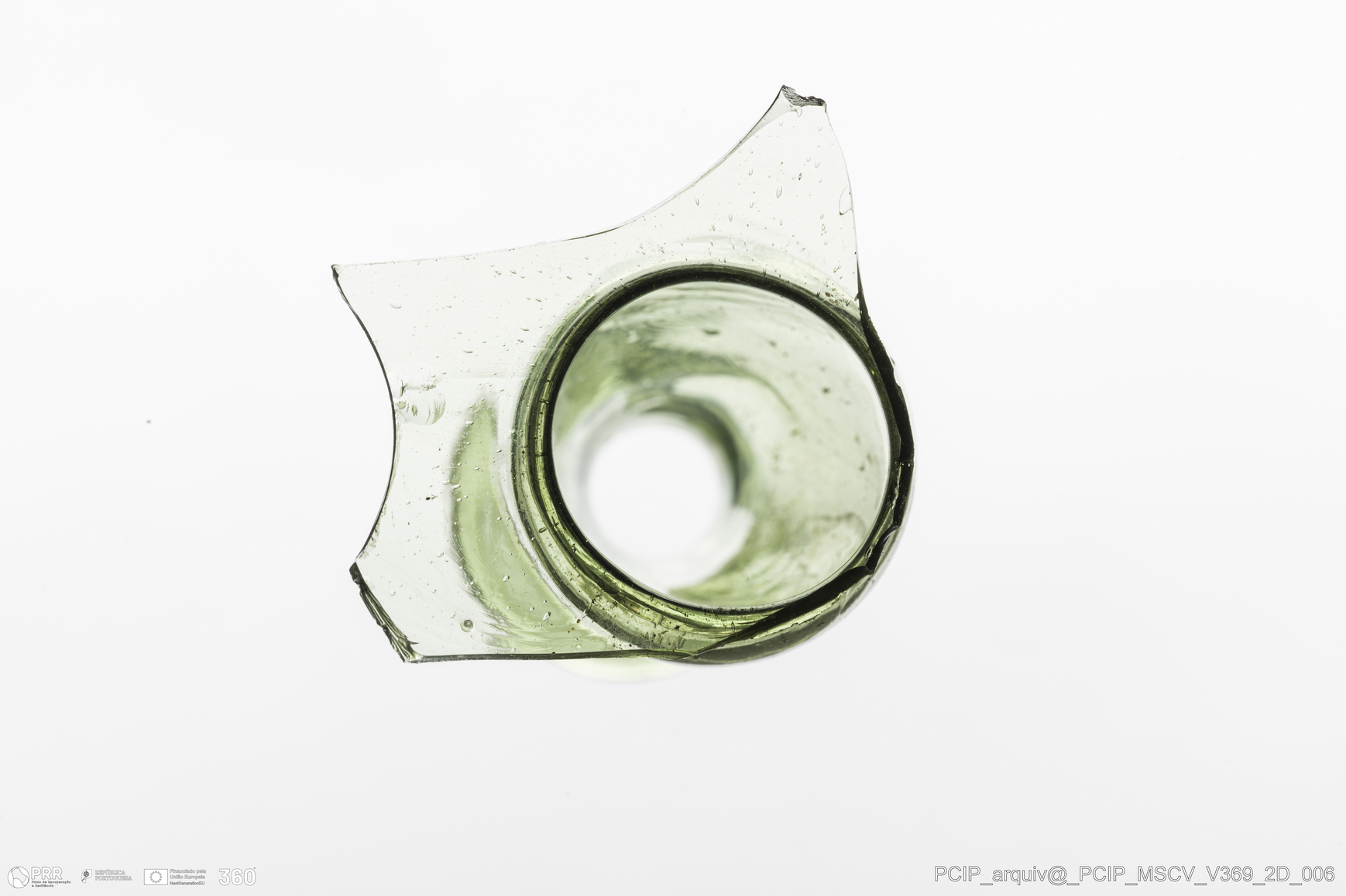 Matéria/Técnica: Vidro; Cronologia: Século XVII; Autoria: Desconhecida; Dimensões: Diâmetro bordo: 24mm.
