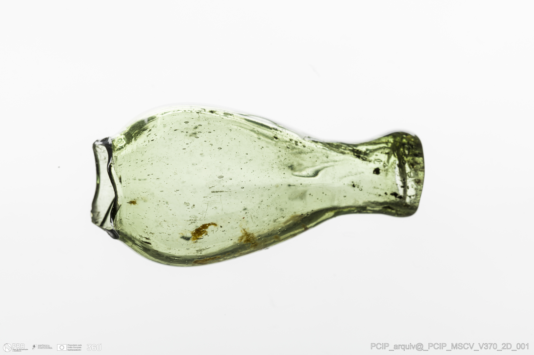 Matéria/Técnica: Vidro; Cronologia: Século XVII; Autoria: Desconhecida; Dimensões: Diâmetro bordo: 14mm.