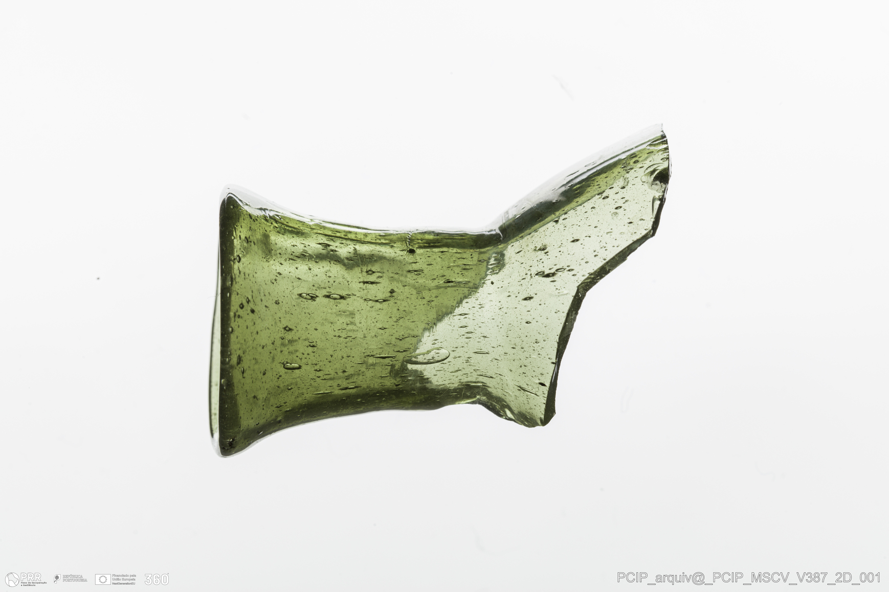 Matéria/Técnica: Vidro; Cronologia: Século XVII; Autoria: Desconhecida; Dimensões: Diâmetro bordo: 21mm.