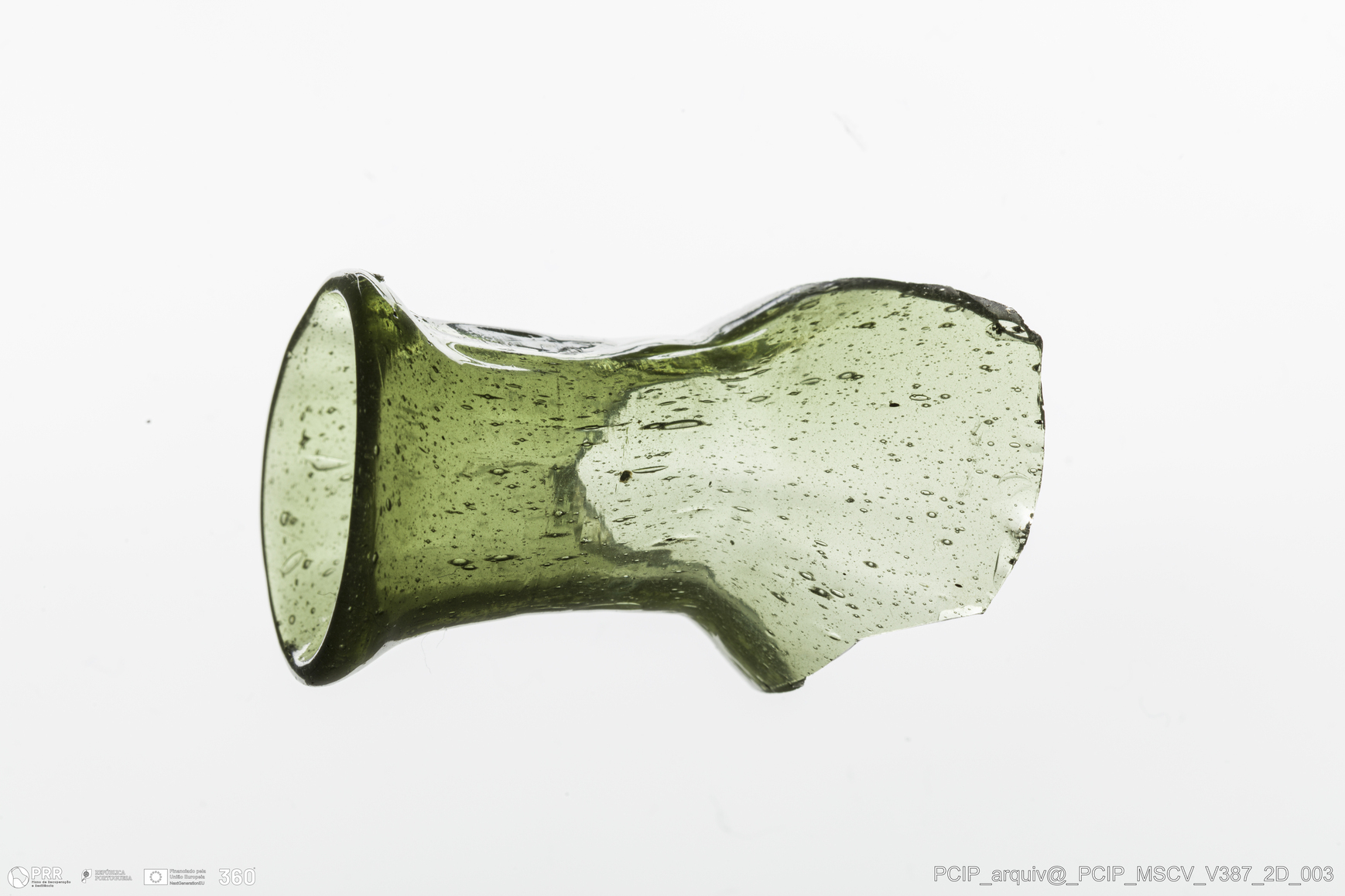 Matéria/Técnica: Vidro; Cronologia: Século XVII; Autoria: Desconhecida; Dimensões: Diâmetro bordo: 21mm.