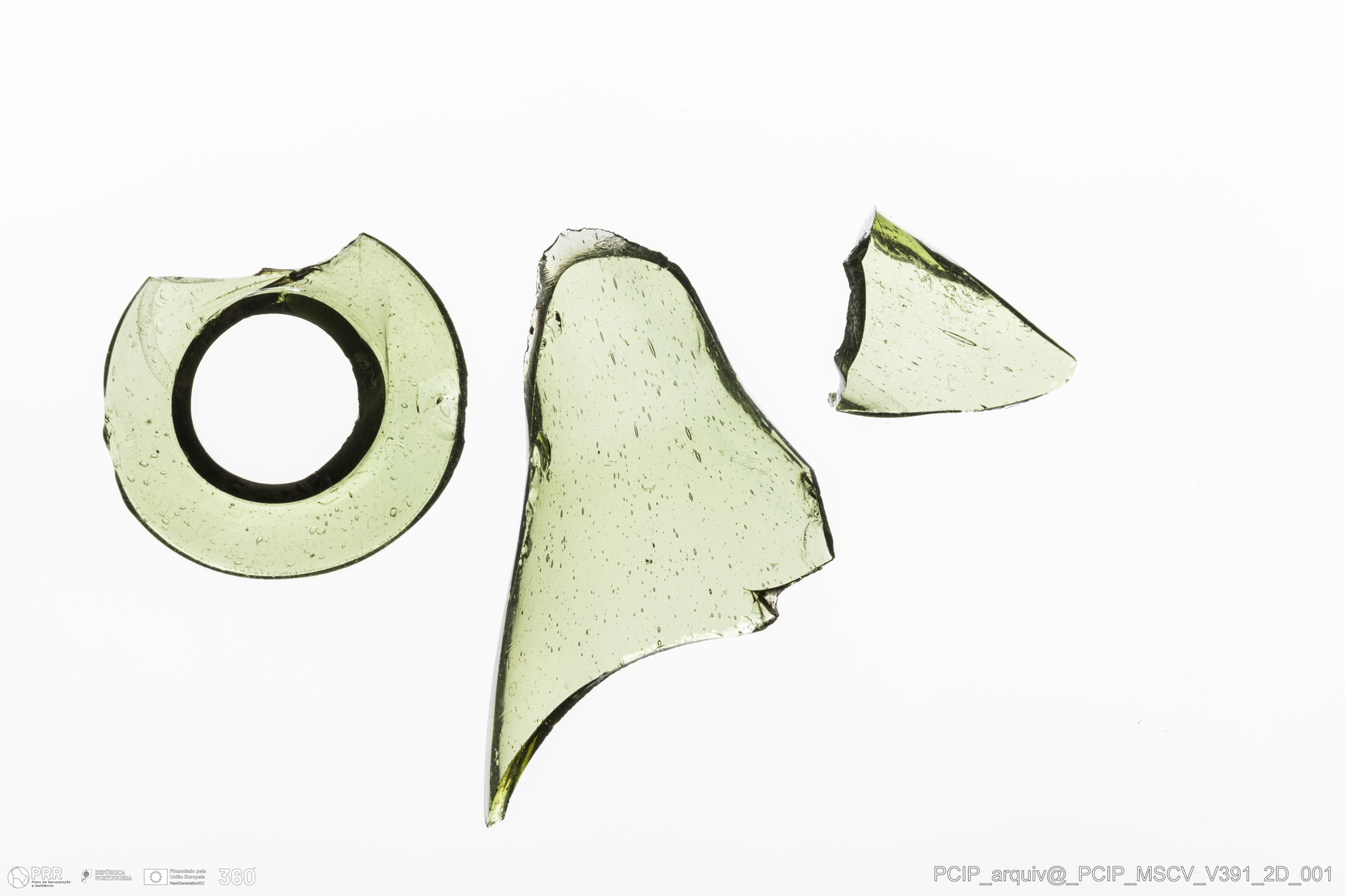 Matéria/Técnica: Vidro; Cronologia: Século XVII; Autoria: Desconhecida; Dimensões: Diâmetro bordo: 28mm.