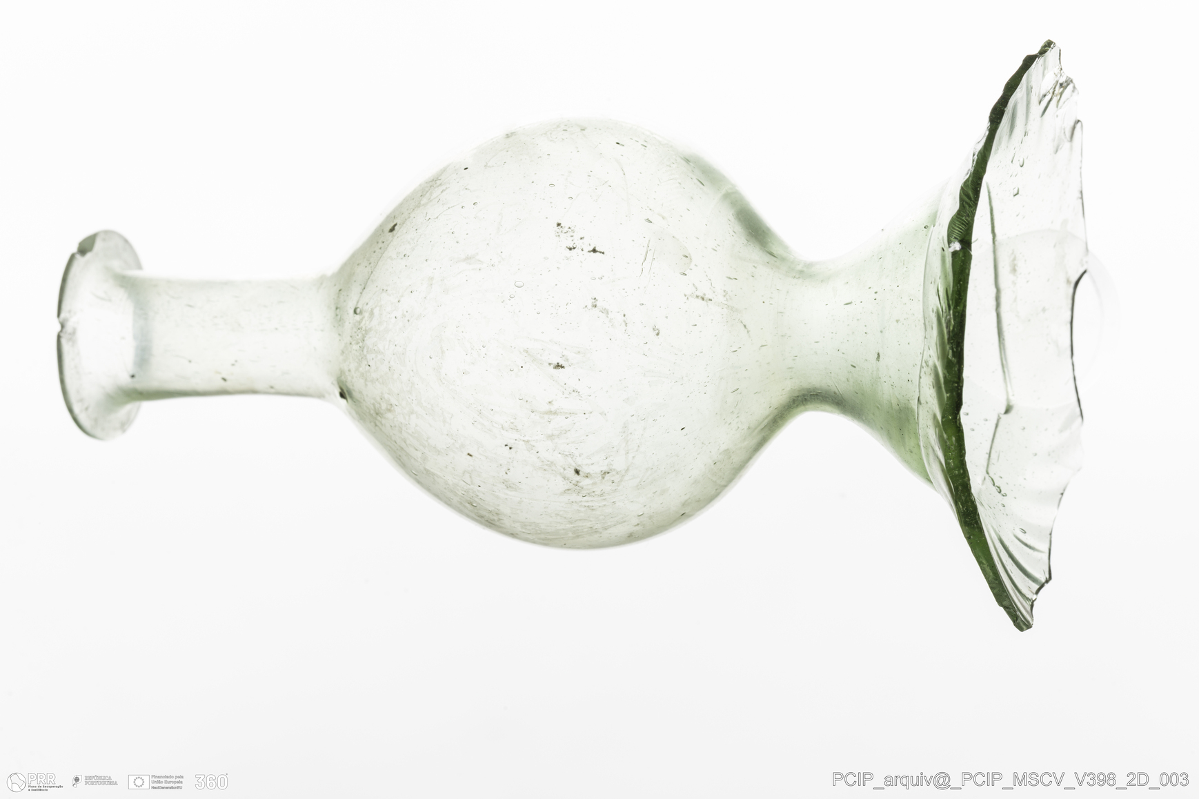 Matéria/Técnica: Vidro; Cronologia: Século XVII; Autoria: Desconhecida; Dimensões: Diâmetro bordo: 24mm.